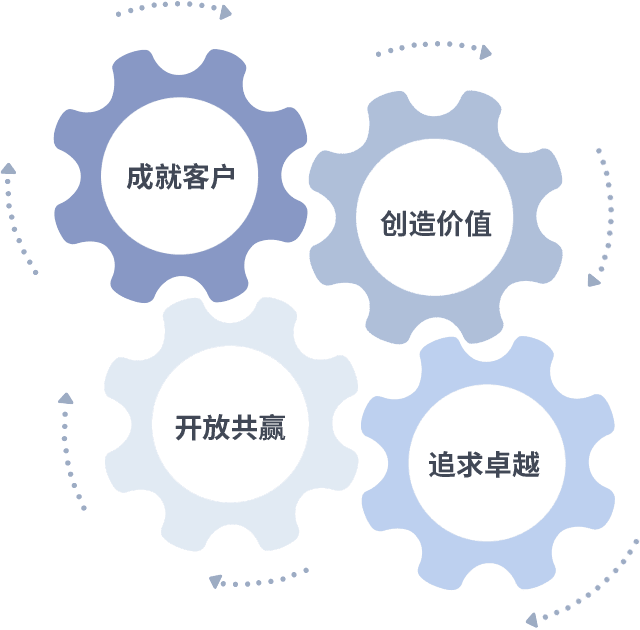 成就客户是一切决策的出发点,,,,创造价值是衡量所有工作的标准,,,追求卓越是焦点娱乐做事做人的态度,,,,开放共赢是焦点娱乐的格局也是最终的结果。。。。价值观的齿轮环环相扣,,推动着组织里的每个人不断向前。。